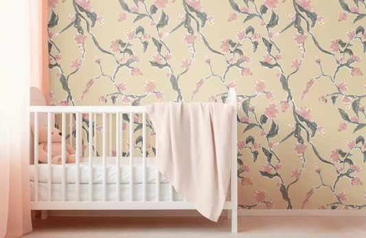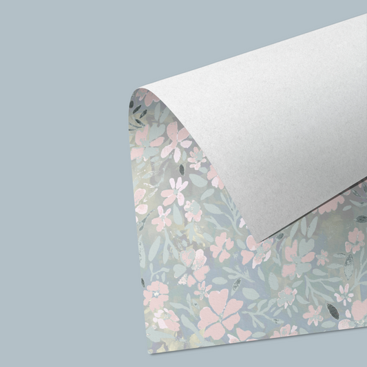 'Oops a daisy' wallpaper in pastel blue and pink colours